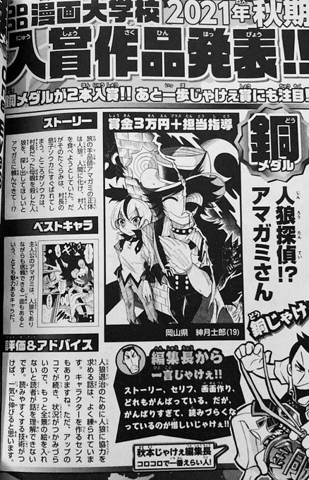 お知らせ この度紳月士郎、2021年コロコロ漫画大学校秋期にて銅賞を頂きました🥉👏✨ 漫画で初めて実績がついて大変嬉しく思います!次は新人コミック大賞に向けて頑張りたいと思います✍🏻🎩🌙