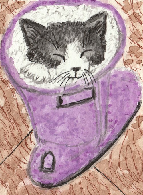 #cute #pet #Watercolor #original #Artwork #Gift #Small #animal #Adorable #Handmade #cat #aceo #purple #Valentines https://t.co/ebb1jB9lsd