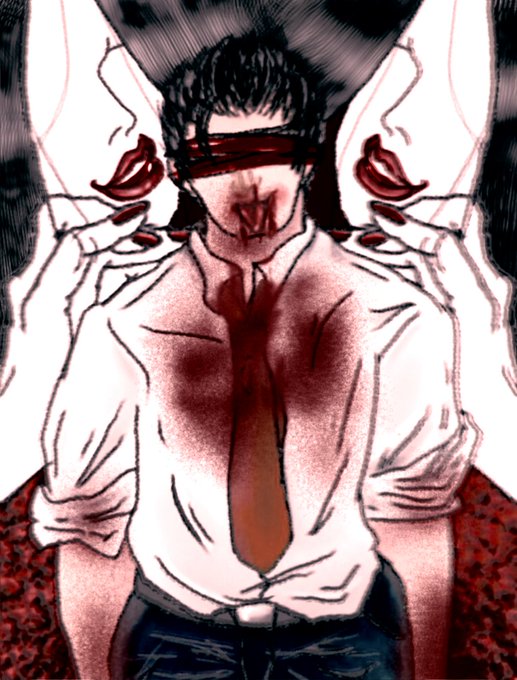 過剰加工と 元と 下書き 後 鼻 リアルに 描けたのに 血で 潰れて 悲しかった