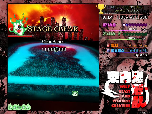 熱いうちに手早くノーマル&エクストラ制覇。 全体的にSTG寄りの弾幕STGの印象(なんだそれは…)。 避けるより倒す方に力を入れた方が進みやすい。Ex中ボスとか、二つはほぼ回避行動いらないし。
