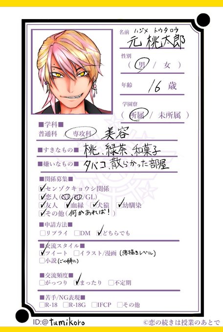 @koi_thudu こちらに参加させていただきます!口汚くガラが悪い為誤解されがちなお節介男です。 ※コルセットピアス閲覧注意 暴言を吐きますが恋愛も友情も大歓迎です! 不備があり再投稿失礼しました! #恋続_CS #恋続_生徒 #恋続_美容学科 #恋続_写真部 #恋続_関係募集 #恋続_参加者と繋がりたい