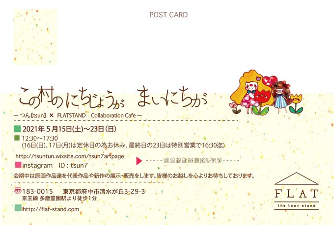 ついに今日から FLATSTANDさんにて 約1年振りとなる個展 【この村のにちじょうが まいにちが】 始まります🌷 大切な作品達が空間に並びます😊 🗓️2021年5月15日(土)~5月23日(日) (16日(日)、17日(月)は定休日の為お休み、最終日の23日は特別営業) 🕰️12:30~17:30 (最終日の23日は16:30迄)