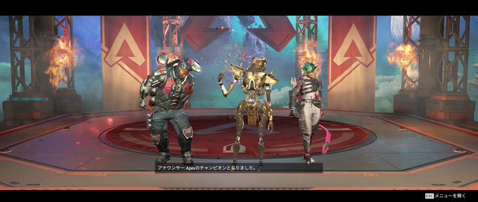 三点さんと、後から合流してすずのまるさんとAPEX😄野良のとってもいいオルターさんとデイリーの下手っぴなレヴナントでチャンピオン取れた✌️その後三人揃ってから湯けむりチャレンジした🥰(おじ・オクタン・コンジットでチャンピオン画面で全員煙幕エモートをやる)見事チャンピオン二回取れた✌️