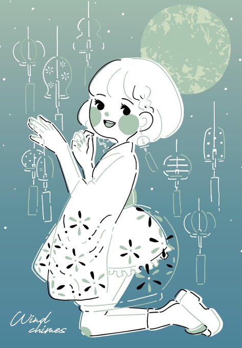 風鈴ちゃん 単色 #イラスト #風鈴