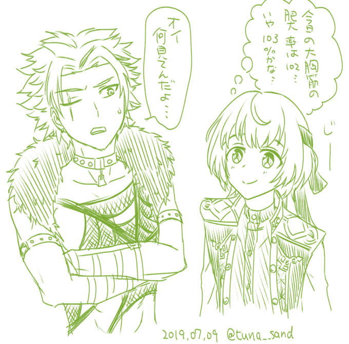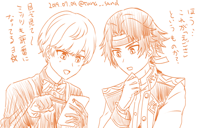 お揃いの衣装だと兄弟みたいで可愛いな~と思ったらふとロンナイが頭を掠めて暗い絵になった。サタンはおやすみ