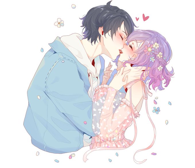 look at this really pretty kiss commission of my OCs Momoka & Senri by the lovely @/Srinitybeast 🥰
