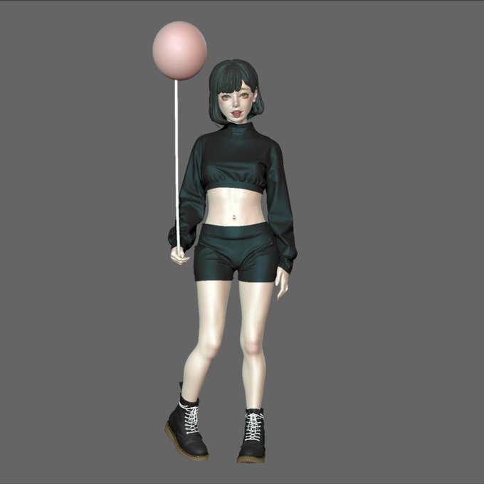 センタータンの子、紆余曲折あって可愛いポーズになりました、可愛いですね #ZBrush #MarvelousDesigner