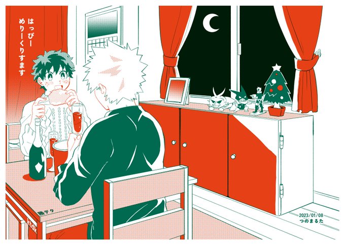 いろいろ間に合えば1/8のインテはこんな感じの表紙のコピー本が出ます!勝デク! 季節外れですがクリスマスネタです🎄🎅