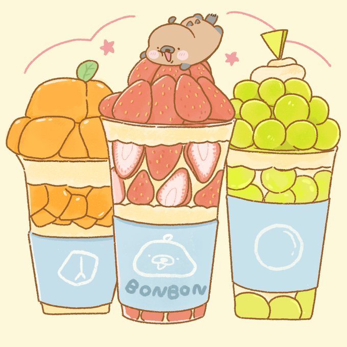 ふるーつ たくさん おいしそー🍓🍈🍇 #カナダヤマアラシ #イラスト #お絵かき #絵描きさんと繋がりたい #一日一絵 #ボンボン #スイーツ #韓国スイーツ #パフェ
