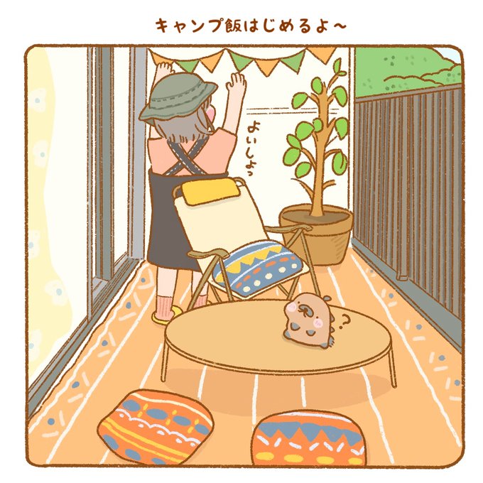 べらんぴんぐ ってなにー🏕? なんだか たのしそー! #カナダヤマアラシ #イラスト #お絵かき #絵描きさんと繋がりたい #一日一絵 #キャンプ #ベランピング #ベランダ