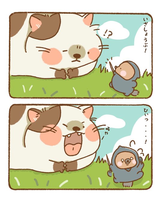 にんじゃになったらやりたいこと⑨ ぼくはつよいんだぞ! …いや、まやちゃんがいちばんつよいや😌 #つんたろう #カナダヤマアラシ #イラスト #キャラクター #ゆるいイラスト #一日一絵 #忍者