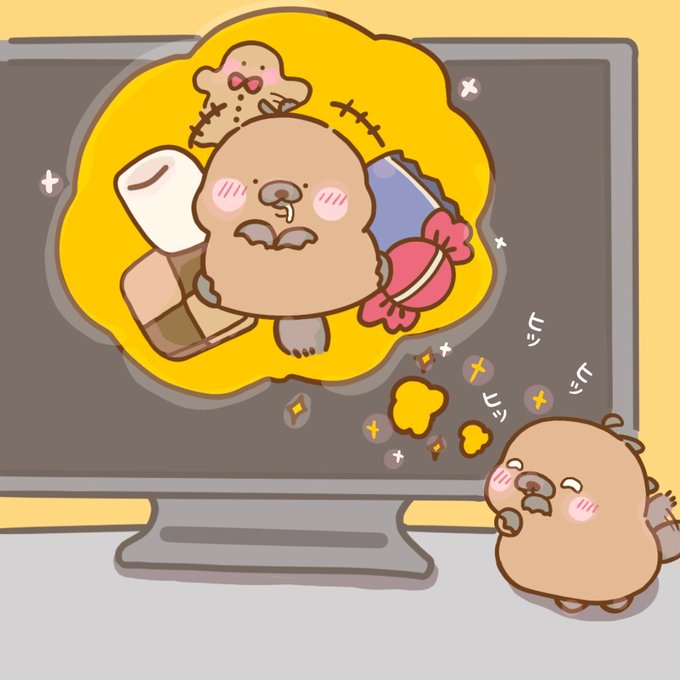 かぼちゃのものをよくみかけるけど なにするのかな? #つんたろう #カナダヤマアラシ #イラスト #キャラクター #ゆるいイラスト #一日一絵 #ハロウィン