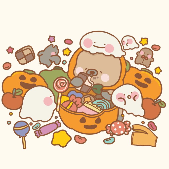 とりっくおあとりーと!🎃 おかしたくさんもらえたよ👻 #つんたろう #カナダヤマアラシ #イラスト #キャラクター #ゆるいイラスト #一日一絵 #おうちでハロウィン #デザフェス