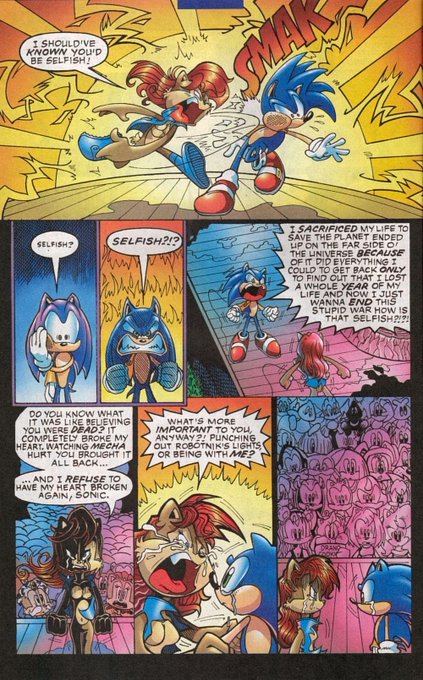 @Zhane_Star Only time I will say that phrase on a Sonic character is when it doesn't make any sense nor fit their long periods of development of how they've been designed. One was Sally's slap and other Shadow forgetting Blaze's kindness. However I know the writers love drama for no reason.