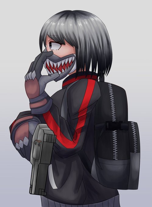 リボルバーをもっている子 #イラスト #絵 #女の子 #銃 #リボルバー #マスク