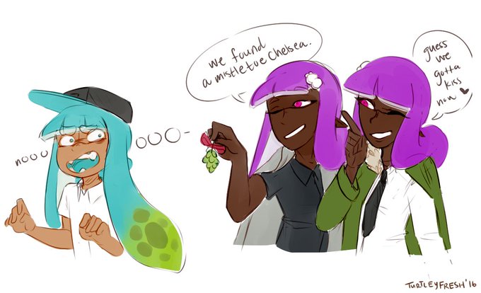(S1 || 2016) Both Olive and Chelsea are seldom seen in their og ink colors. Olive for unexplained reasons but can be seen as purple from time to time. Chelsea sticks to turq mostly, partially because it's the color she chose as team captain and also bc she hates being lime green
