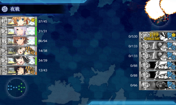 基地の配備間違え(…)と艦載機の熟練度を付けなおしたらいけたのでち。熟練度大事…!(知ってた)