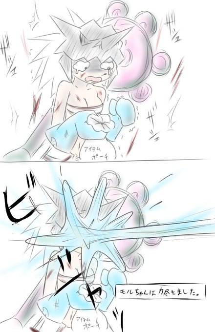 #モルちゃんのハンター日記 裂傷でズタズタになりながらアイテムポーチを探ってる最中に恐ろしいカニの小便を食らって力尽きるモルちゃん