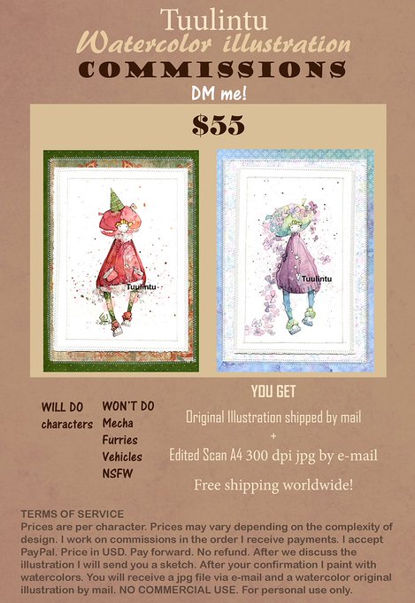 Character watercolor commissions open. DM me!