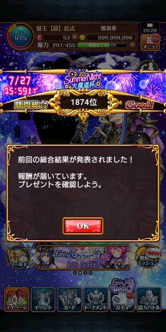 魔道杯お疲れ様でした✋無事に進化素材と総合トロフィー🏆️を獲得しました😊感覚的には、元々総合取っていた人は変わらないですね😅ただ、今回は走れないという時にカードを完走で獲得できるのは助かりますね。で、進化後のカードは額縁仕様ですか…ボイスだけ聴いて進化前で使用ですね🤔 #黒ウィズ