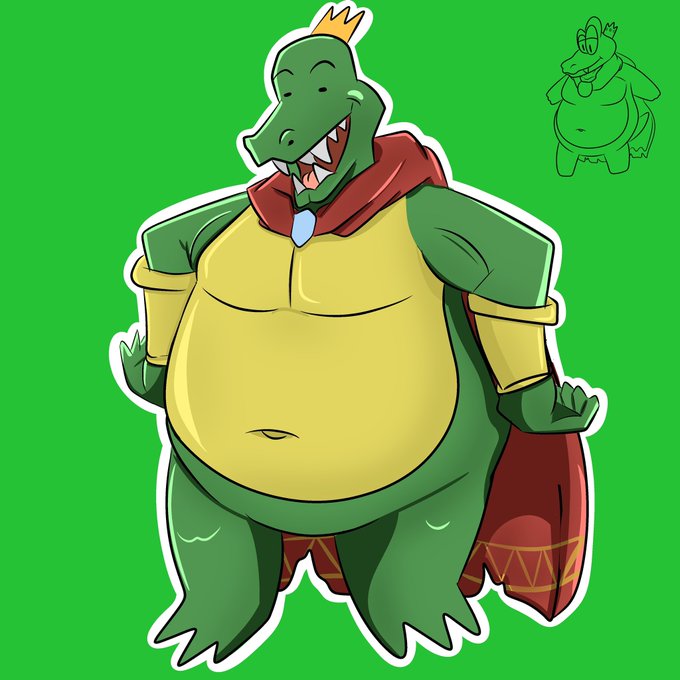 Did a K.Rool drawing today. I really like how it turned out except for the eyes. I hate drawing eyes so much so dots it is. And don’t mind that smol Croc in the back, he was a doodle without reference.
