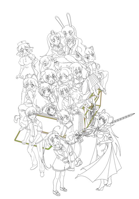 #えとたま #えとたま10周年 レイアウトしたものを元に、細かい修正しつつ 全員分描き直ししてました
