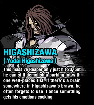 Hishima considers himself to be serious and barely has any hand in the operations of the Reapers' Game. He has an intellectual vibe, but when he talks he's cynical and eccentric. Somewhat mysterious, nothing is known about his goals.