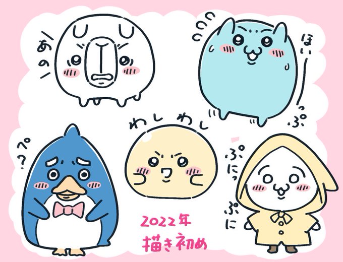 2022年 イラスト描き初め(ち○かわ風?) ...φ(:8」<)_ #わしはん #TL上の架空生物 #プニ描き