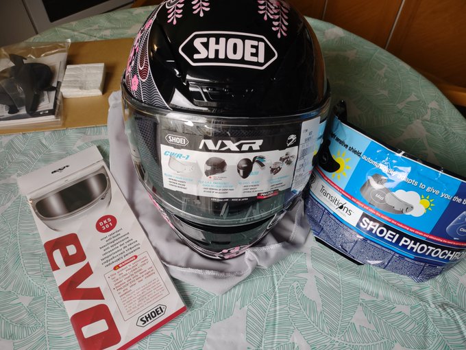 Here's my @EuropeShoei NXR! I couldn't resist since my beloved wife has a Shoei Z-7 🥰🥰🥰🥰🥰🥰🥰