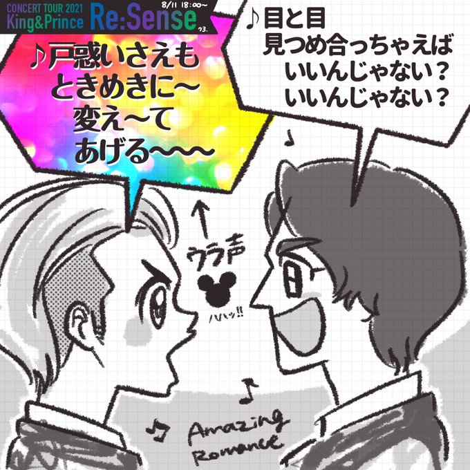 【キンプリ 横アリ 8/11 夜】 Amazing Romance 落ちサビ きしひらで向かい合う所で、ミッ●ーマウスボイスで歌い返してた岸くん😂 平野くんも会場も笑いが止まらなくなってた #KingandPrince #ReSense