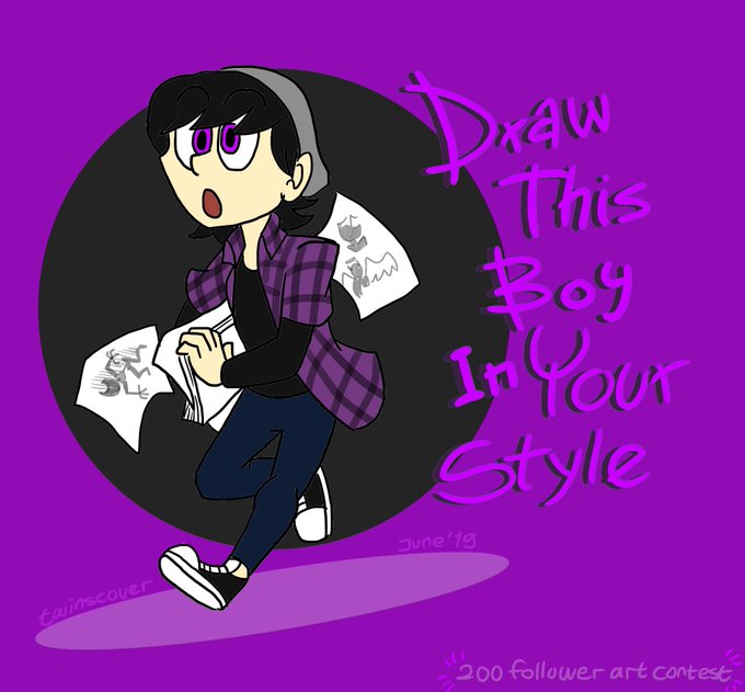 Celebrate my 200 followers in Instagram. I open art contest, draw my oc boys in your style and tag #drawthisboyinyourstyle and tag my name. I pick 1 winner and will be announced in July 28th #drawthisinyourstyle #originalcharacter
