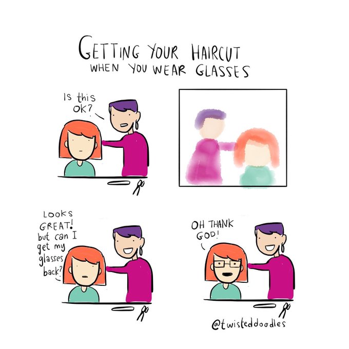 Getting your haircut when you’ve glasses.