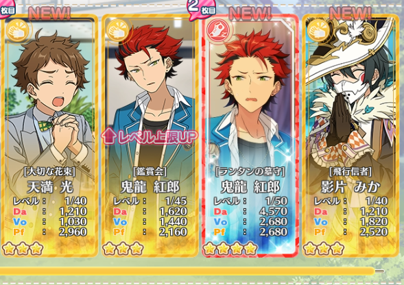 今日の無料と昨日気まぐれに回した誕生日PU。あんスタは色々来るな~(なお他のがちゃは…)