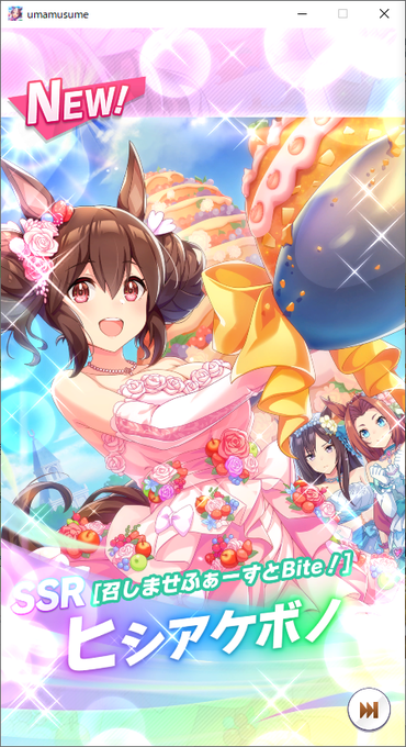 確定ガチャ! ずっと欲しかったタイキ来た! 最近☆3キャラ引くたびに持ってないキャラがピンポイントで引けるのありがたすぎる。 ユキノちゃんのサポカはまあうん