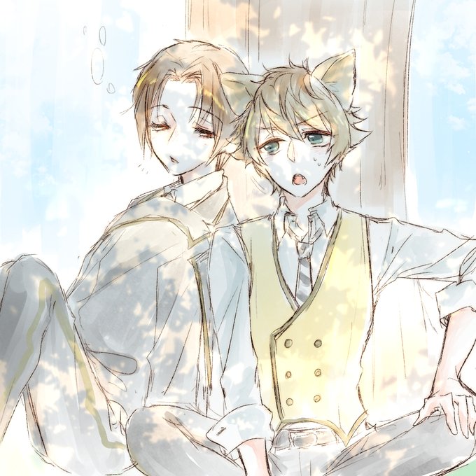 ⚠️顔あり男装監督生⚠️ 【ラギ監/🐆🌸】 「そろそろ起きて欲しいんスけど~……」 #twst_NL