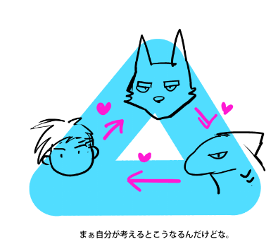人間くんを追いかける鮫くん その様子にショックを受ける犬くん 🐶「そんな奴のどこがいいんだ?!」 恋の行方はいかに… https://t.co/26AXUURVL9