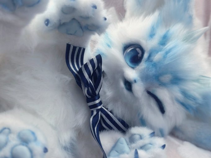 新しい子です!オーダーで製作した青色系の天体獣で、ご要望により事前のデザイン画よりも若干青色強めにしてあります。