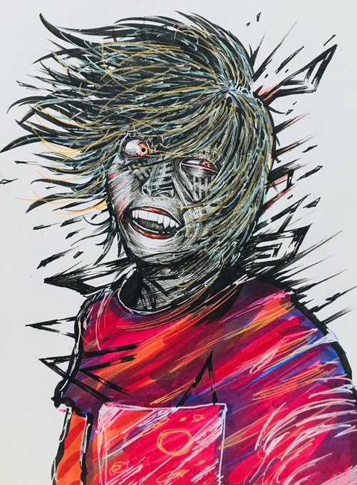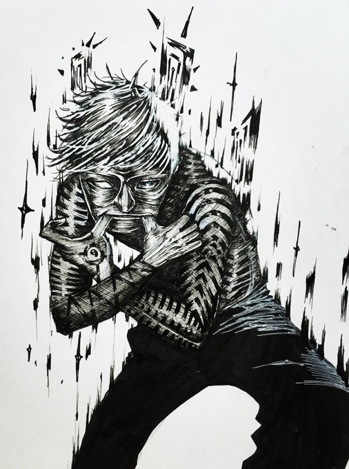 今回はコピック主体で描いてる、あえてペンの黒を滲まじて彩度を下げるやり方ありなんじゃないかなとおもって先にマルチライナーで薄線ひいて薄色のコピックで馴染ます試み一歩間違えたら濃くなりすぎる。水彩でやればいいじゃないすかってなる。 筆洗出すのがめんどい 我流