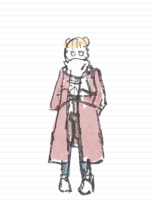 ノーカラーコート 多分下はセーターと短パンとタイツ