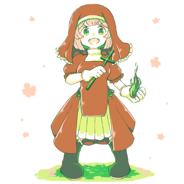お金さえ払えば何でもやってくれる悪徳教会に所属するシスターの女の子。自分の魔法が待てない子。甘いものを与えて置けば大人しい。