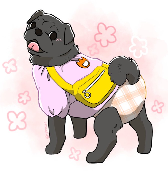 お客さんのワンちゃんがすっごく可愛かったから覚え描き スモックにオムツとか可愛すぎかよ…(//∇//)