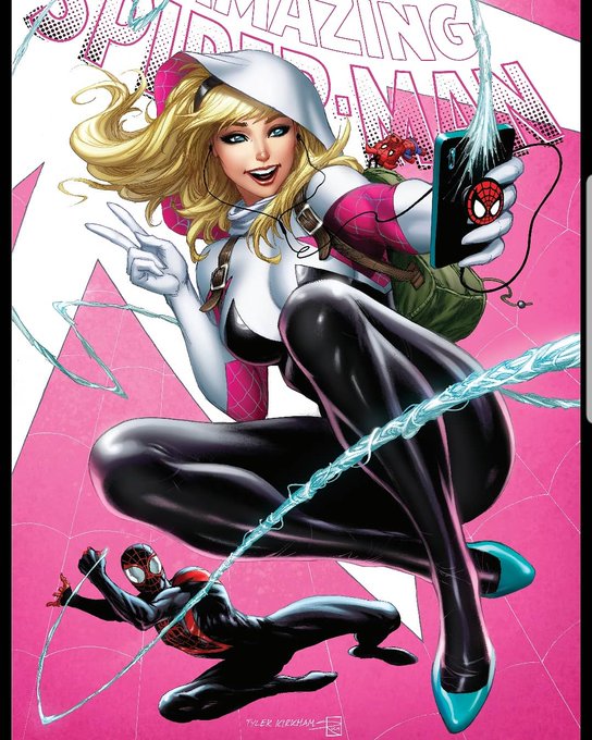 TOMORROW! 9am PT, 12pm ET #amazingspiderman 15 set goes live at https://t.co/pUJBXRirLq. This set was so fun for me! Being so inspired by Into the Spiderverse and wanting to draw Gwen and Miles. Getting to draw Iron Spidey again! Haven't drawn him since my couple ASM issues.