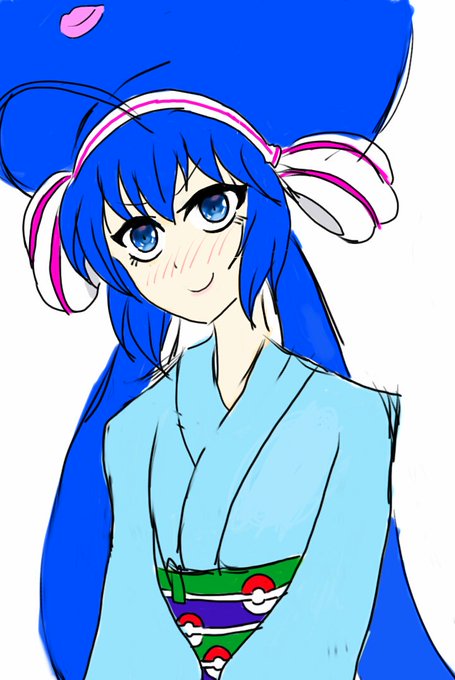 浴衣のウナちゃん描こうとした() 目ってどう描きゃいいのですか・・・体って・・・背景って 夏の終わりには成長してる事を祈ろう