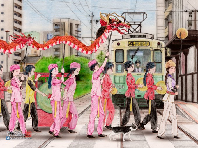 #おはよう日本 #今日の待ち受け画面 #オリキャラ #猫巫女 #代理ちゃん #つばめの長崎さるく #長崎市 #出島