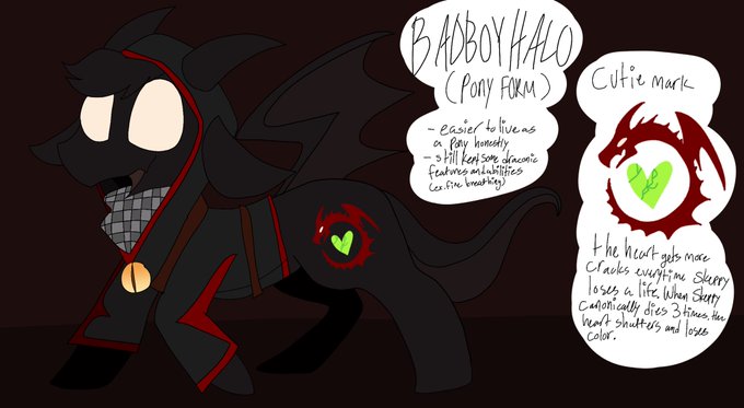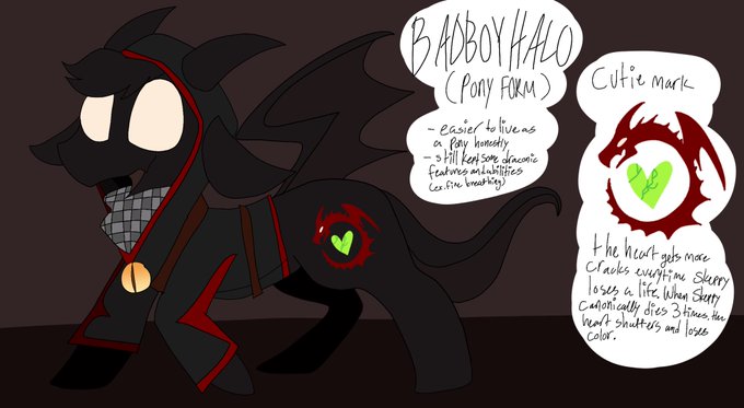 i imagine hes a dragon but yno. being big dragon kind of hard to be so he has this Magical Dragon Eye thing that lets him switch between pony and dragon form bc thats cool