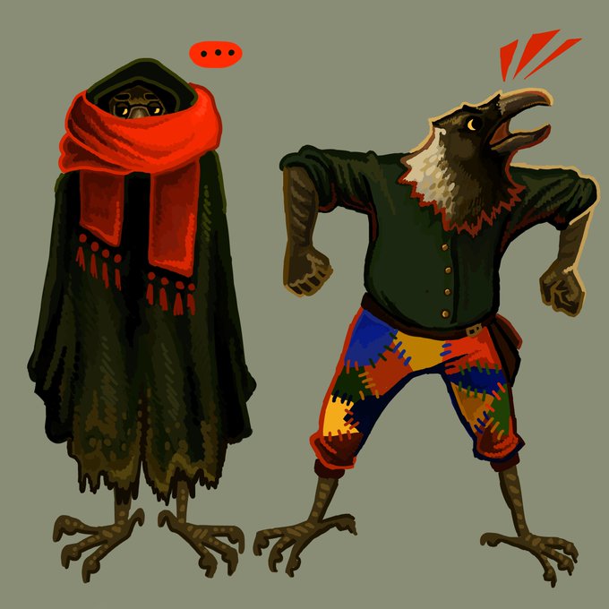 Some D&D references I've been working on! My Kenku ranger and his cockatrice! (Who is named DEBORAH)