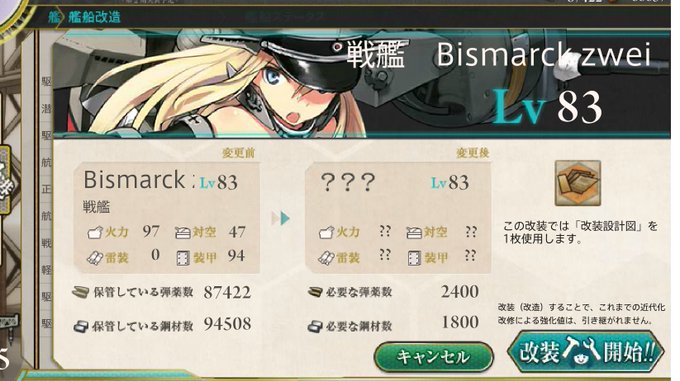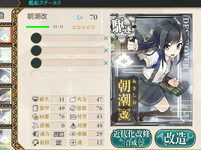 朝潮を改二に、ビス子をzwaiにしたー!!!!夏イベ一緒に頑張ろうね~!