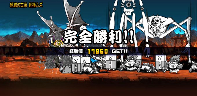 我らが「にゃんこ軍団」が絶滅の古渦 超極ムズを侵略しました。https://t.co/NBoRtI2Tcy #nyanko 今度はちゃんとした渦対策編成