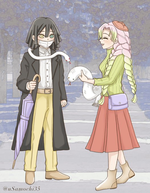 桜絵はどうしたらかっこいい🐍さんを描けるのだろう?と模写から始めたけど全然似せれなくて途中で諦めた😇もっと良い顔を描けるようになりたい🥲髪が風で揺れてたり指でカブ君をスリスリする所が自分の萌えポイント💗待ち合わせ設定は後付け🤭