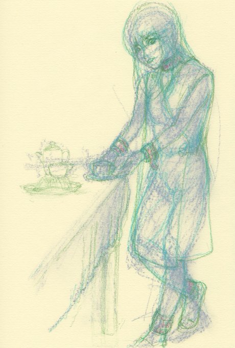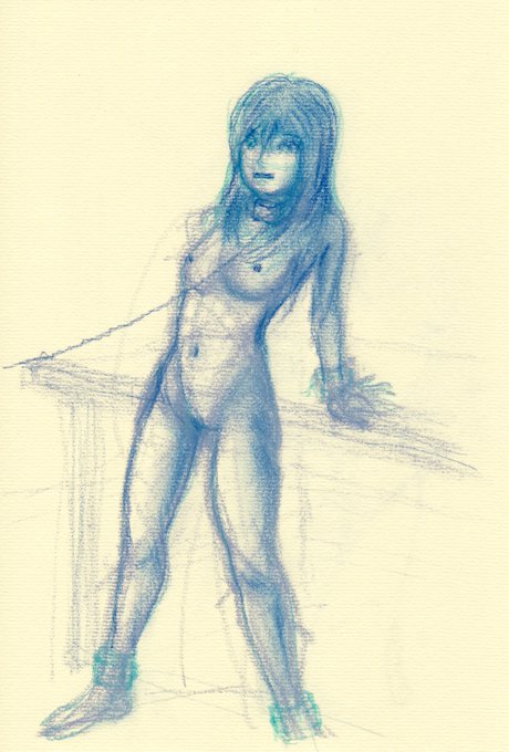 「早朝のえむ」 「そろそろ起きなよ ためらいがちの乱暴ぎみに」 #首輪女子 以前描いたスケッチ、らくがきにタイトルつけて、怠々やってないでスイッチ入れろ自分。